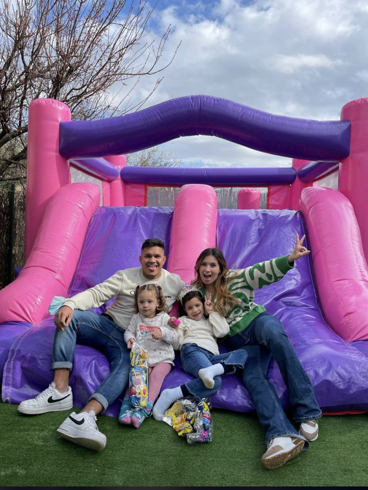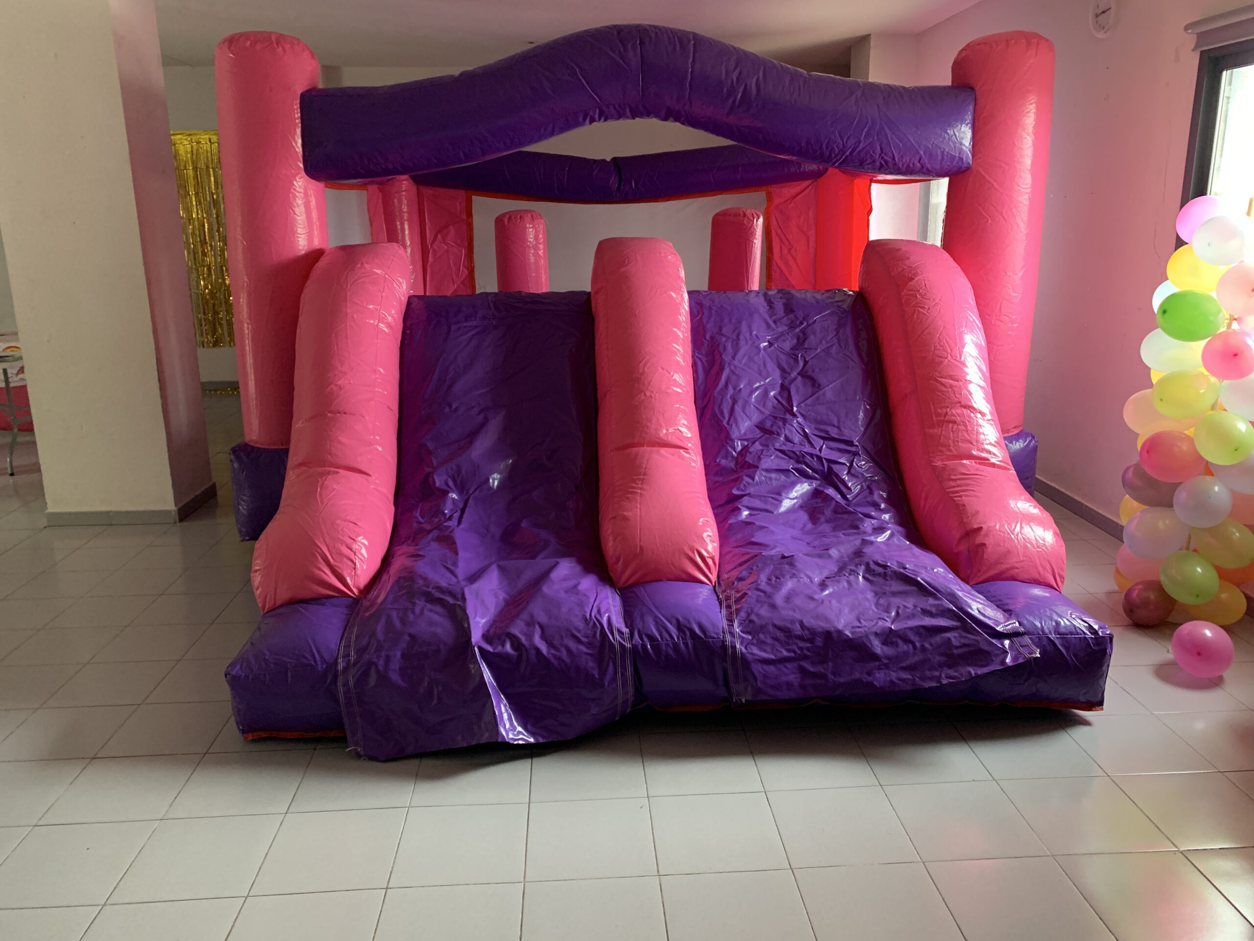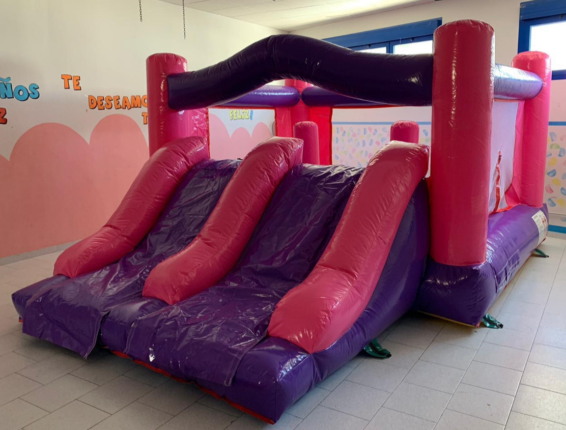 Castillo Hinchable Alquiler Doble Tobogán Rosa:
